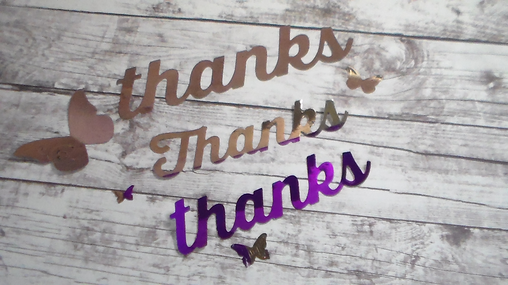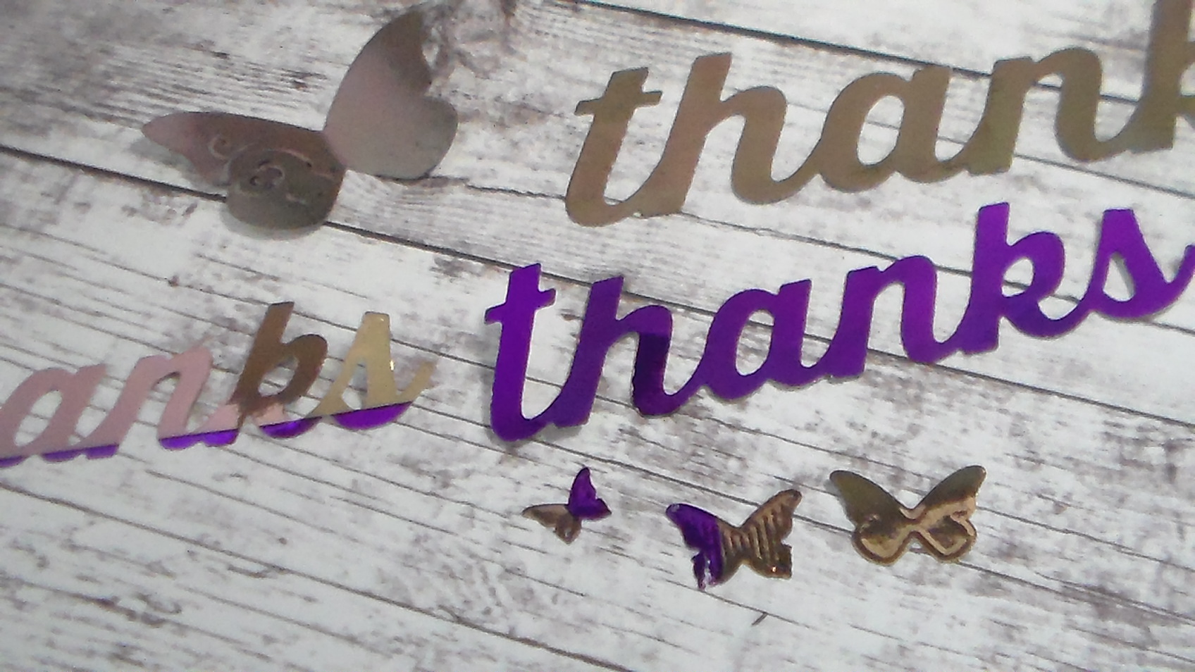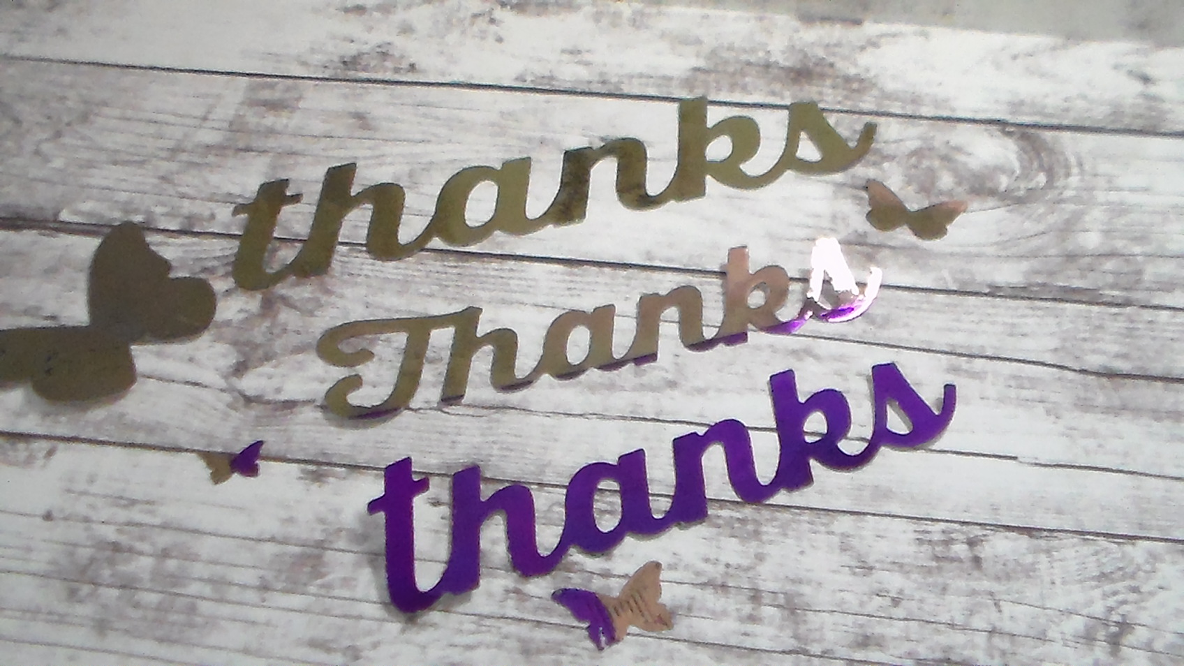 So these packages come with 3 sheets of 8 1/2 x 11″. They are thin but cut very easy with die cuts. The die cuts I used in the photos below are word dies 3 different Thanks, and then I used from Stampin’ Up! the embosslits “Beautiful Wings”.