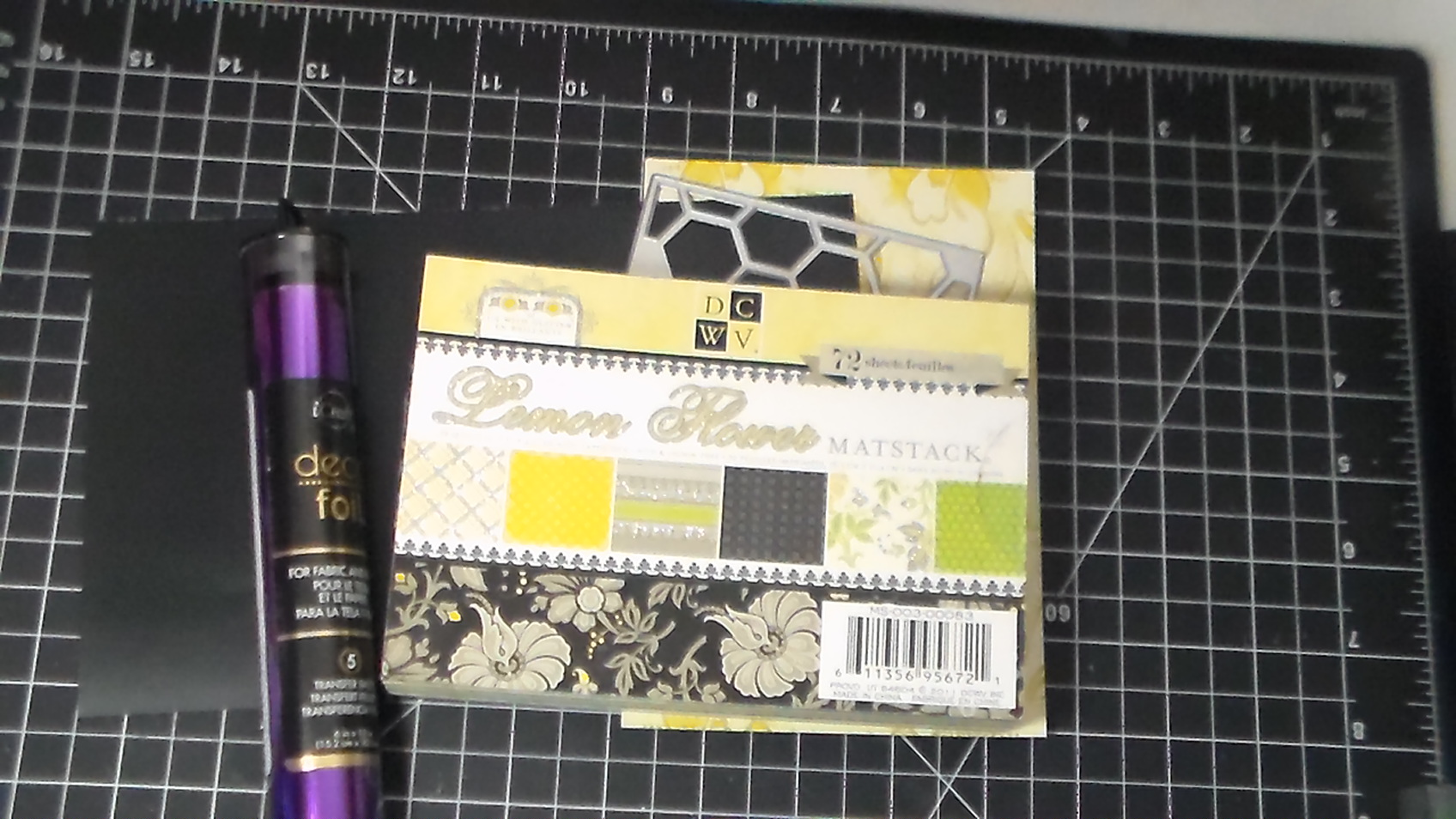 We are using DCWV paper pad ” Lemon Flower”and the Toner sheets by deco foil. Make sure you have a laminator to run your project through….in the video I use the mini minc on #3 setting……I will give you a heads up as this pops into my mind make sure to run it through twice if on low to ed heat setting. It does have a tendency to want to scratch and can make your project very ugly so be careful and use Stick It.