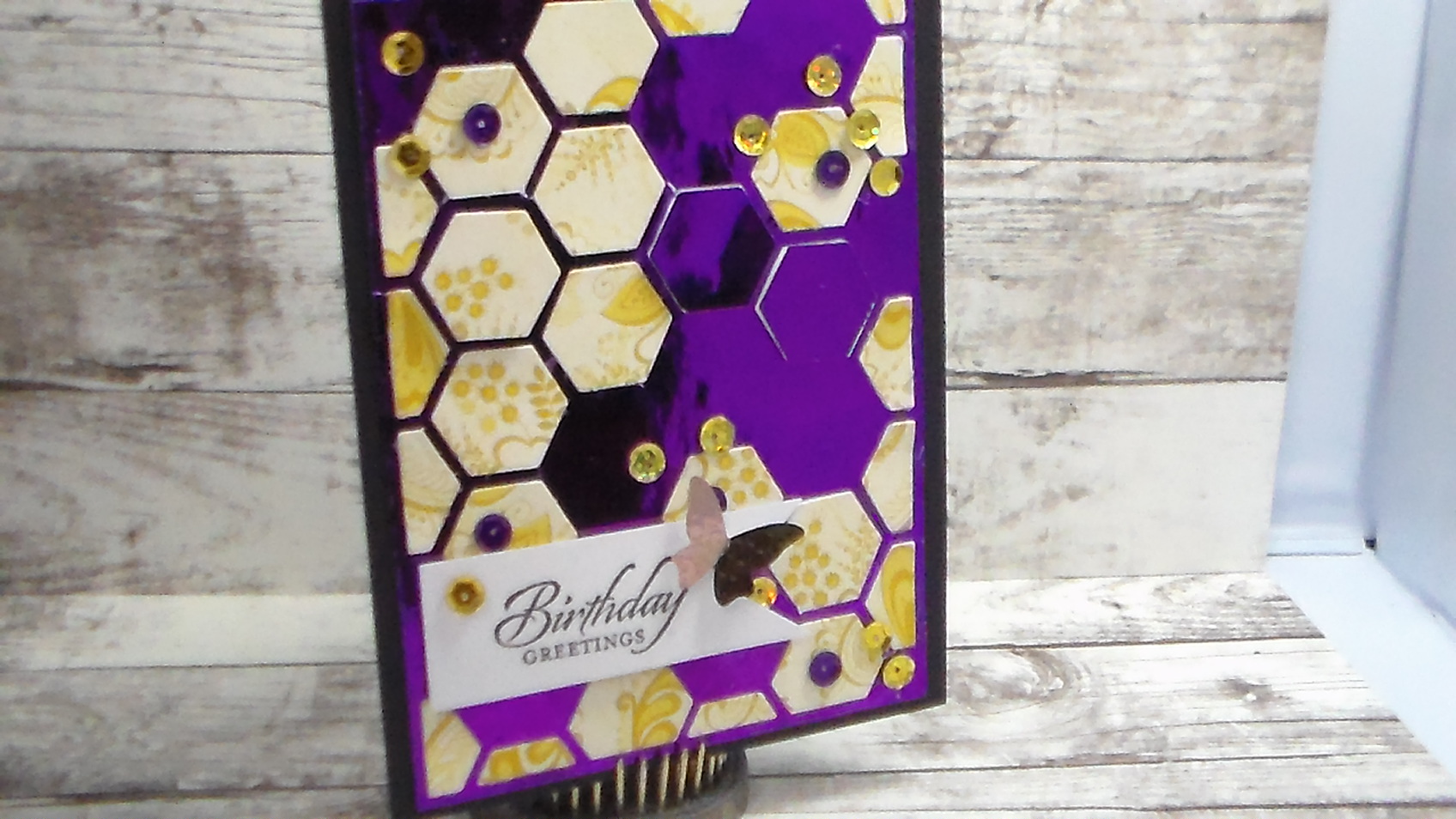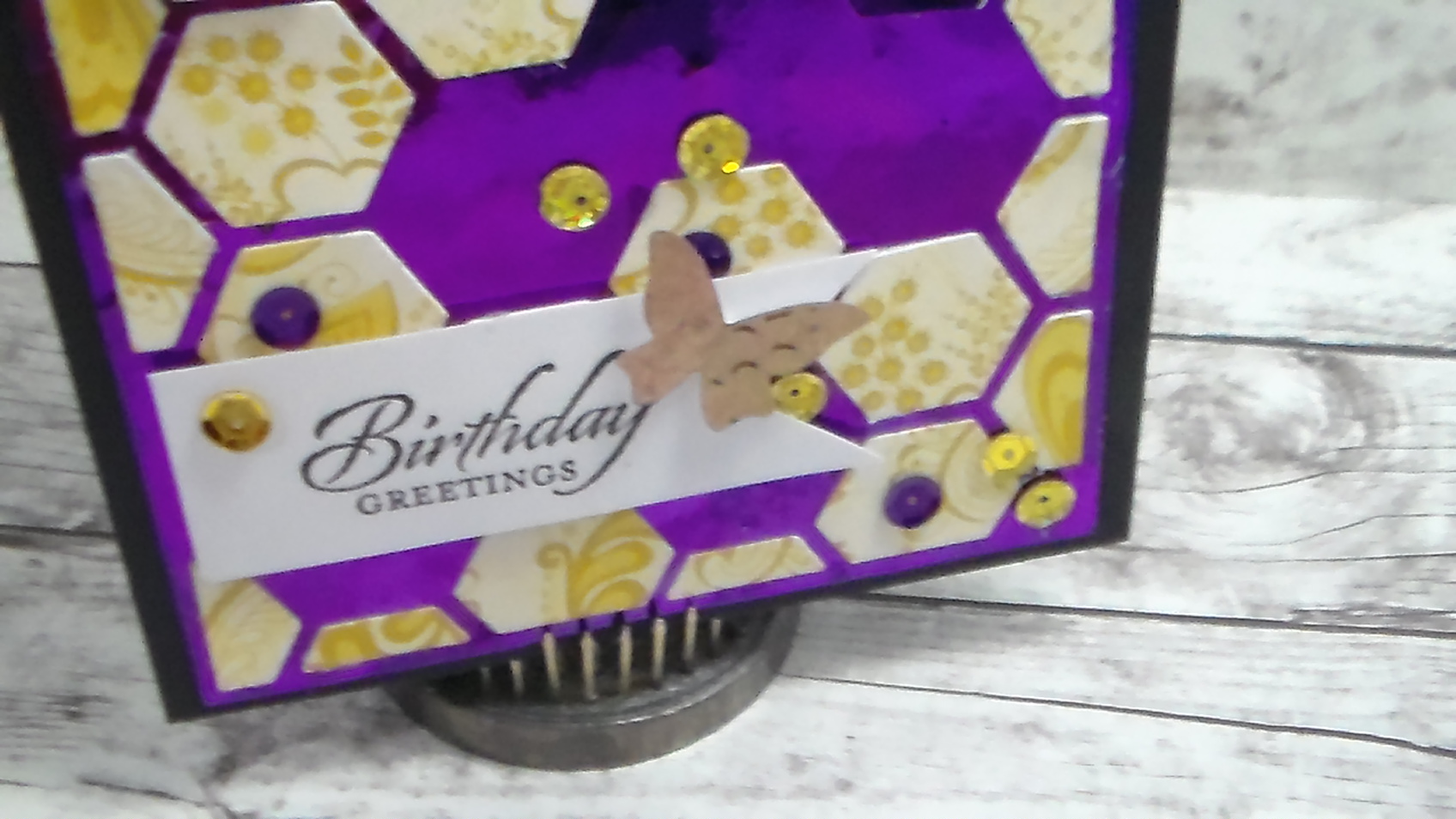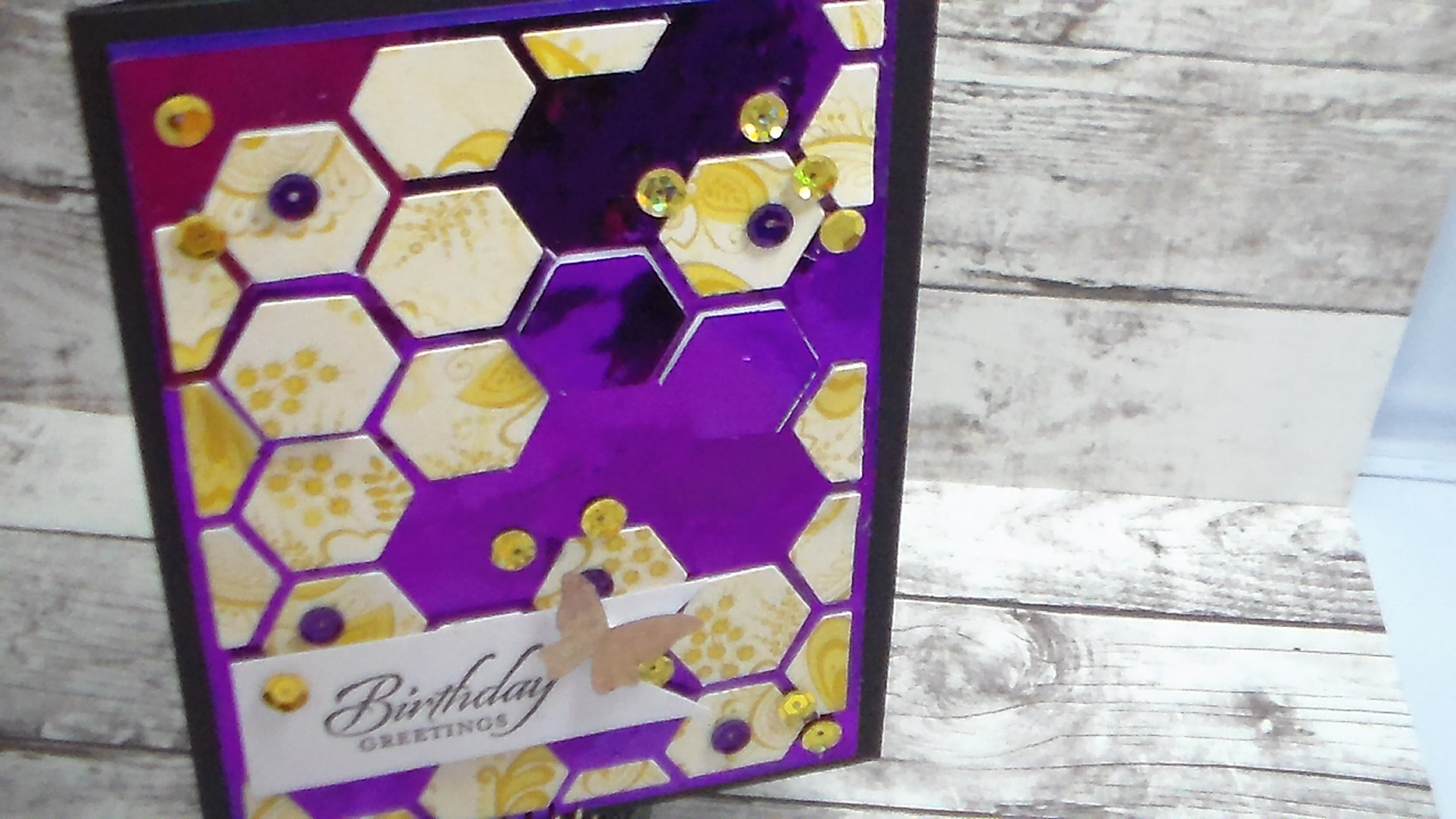 I also added sequins at the end to cover up a boo boo or 3 LOL…….But when you add a simple greeting and a butterfly to the front this turns out to be a really pretty card. I m making it for a friend who loves yellow and purple……I think she might like this card….what do you guys think?